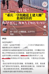 2月25日,“重庆一学校跑道上建大棚”的话题词登上热搜榜。对此,经核实,此为不实消息。该学校相关负责人表示,此视频为转载,并非该校操场。